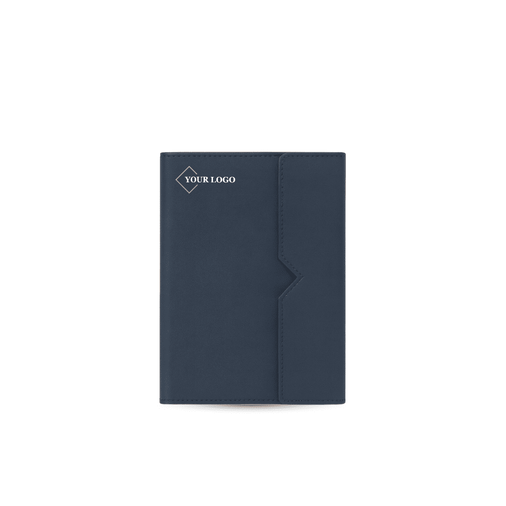 A clean and modern A5 diary crafted in soft-touch leatherette with a unique geometric flap design. Its minimalist look, premium finish, and ample branding space make it a standout choice for corporates looking for elegant, functional, and high-value gifting.