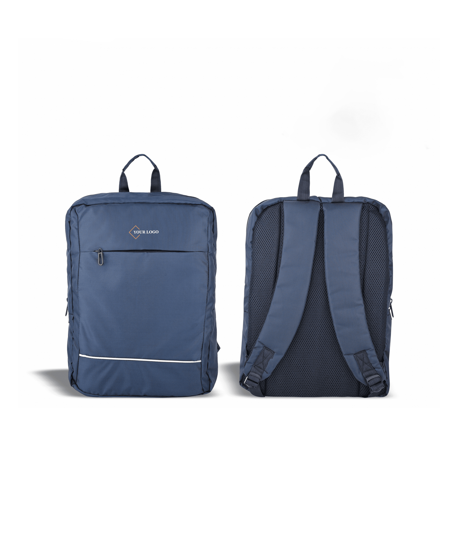 Its clean, minimalist exterior includes spacious main compartment that fits laptop, books, or documents, and secure front zipper pocket for essentials. reflective strip adds an extra touch of safety during evening travel. This sleek bag is ideal for employee welcome kits, college branding, or promotional giveaways where style meets utility.